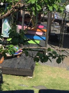 下の写真はそこから見える下のイベントスペースなのですがヨガをしていたり
