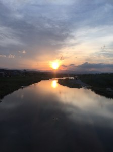 本日の久しぶりに乗った特急あずさからの夕日